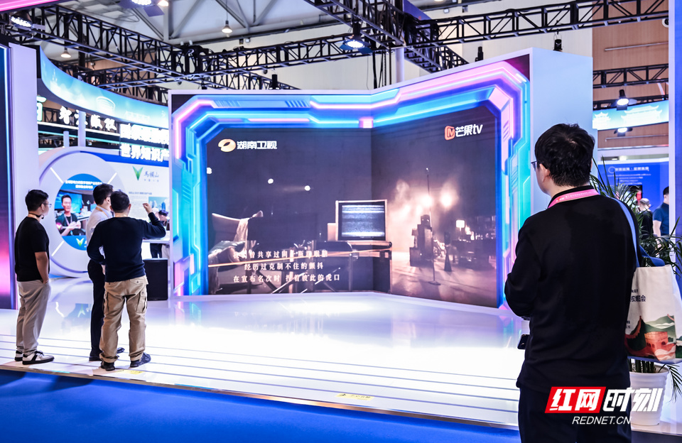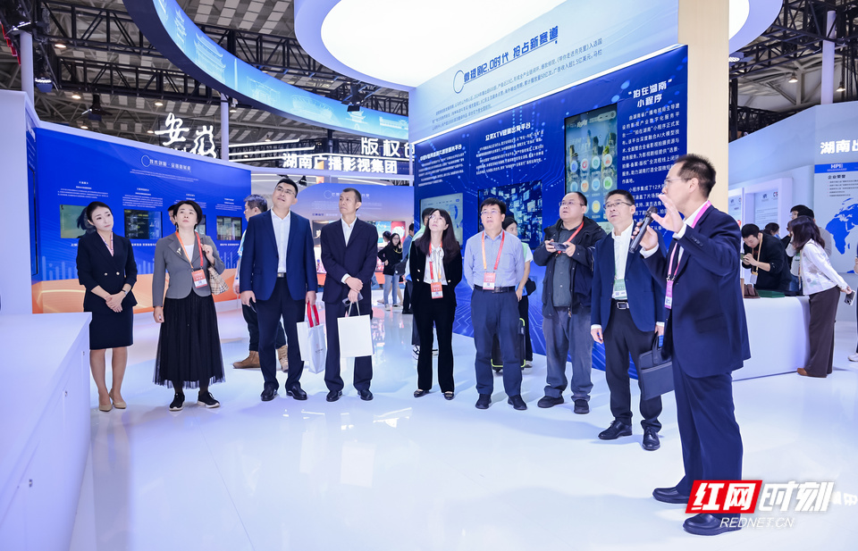 参展嘉宾驻足观看湖南广播影视集团的优秀节目。